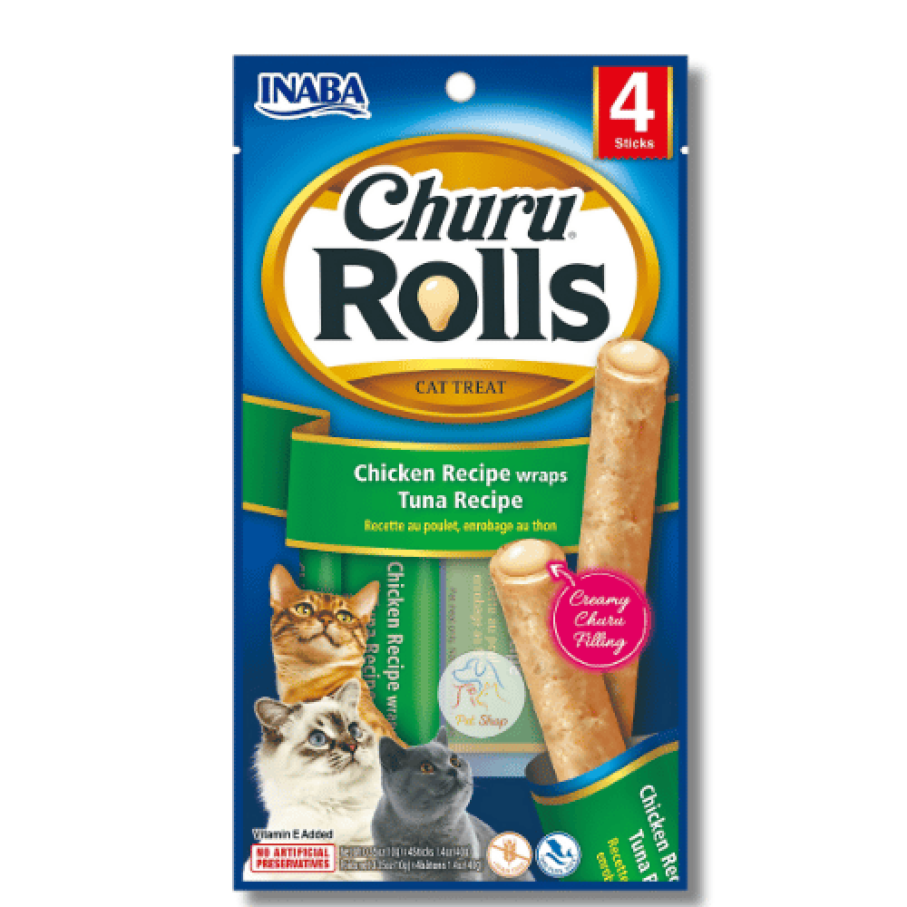 تشورو رولز مكافآت رقائق الدجاج مع حشوة كريمية بنكهة التونا للقطط – 4 أظرف