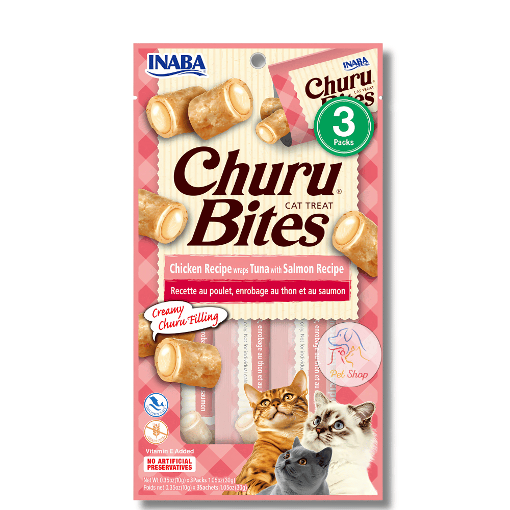 امنح قطتك مكافآت لا تُقاوم مع اينابا تشورو بايتس – نكهة الدجاج مع التونا والسلمون (3 أظرف). تسوق الآن من بيت شوب واستمتع بخدمة توصيل سريعة ومنتجات عالية الجودة!