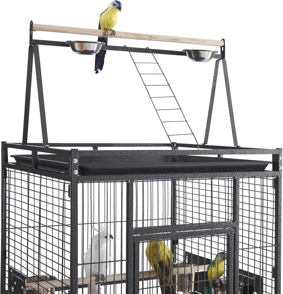 【مساحة كبيرة للمرح】قفص تربية مثالي للطيور مع مسافة أسلاك 1 سم. يساعدك رف التخزين الإضافي على الحفاظ على أدوات تنظيف قفص الطيور وبذور الطيور والألعاب في متناول اليد وأنيقة