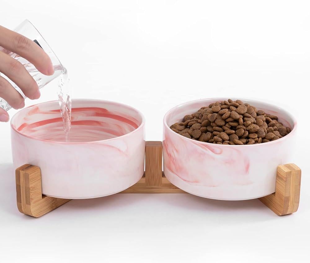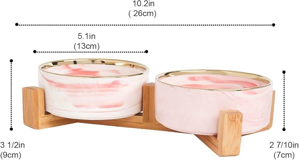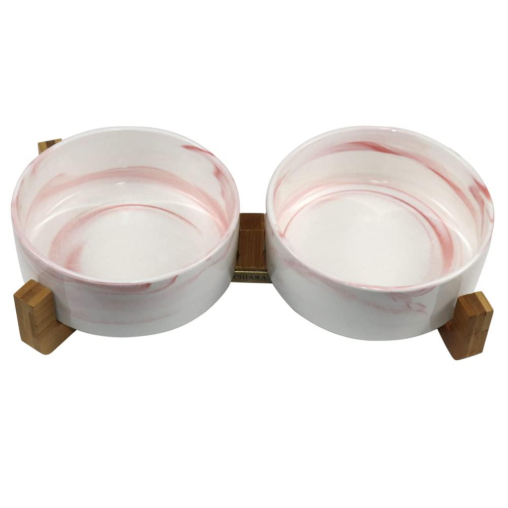 صحن طعام مزدوج عدد اثنين بقاعدة خشب